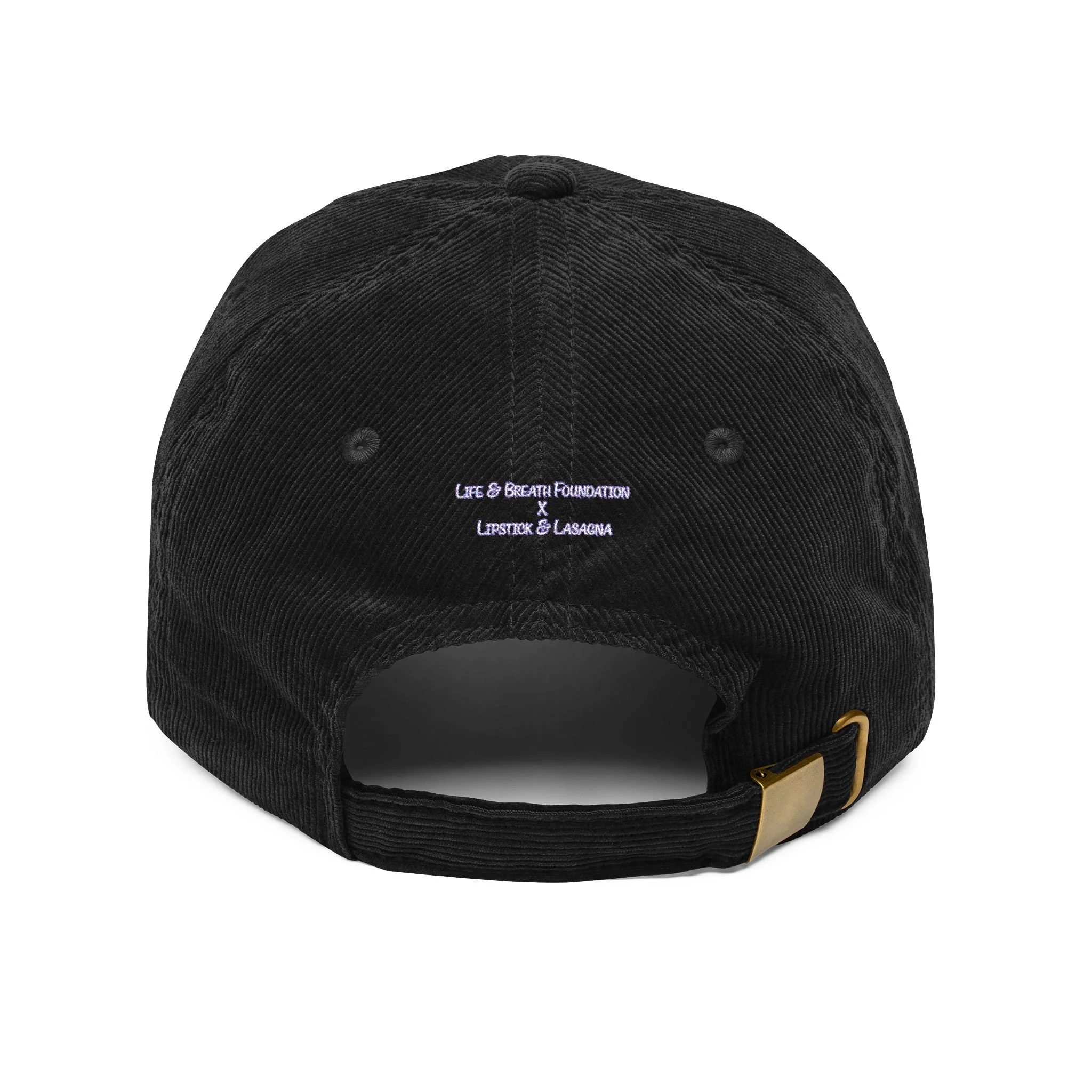 Subtle side and back embroidery highlight the Life & Breath Foundation × Lipstick & Lasagna collaboration, reminding others that awareness is always in action.