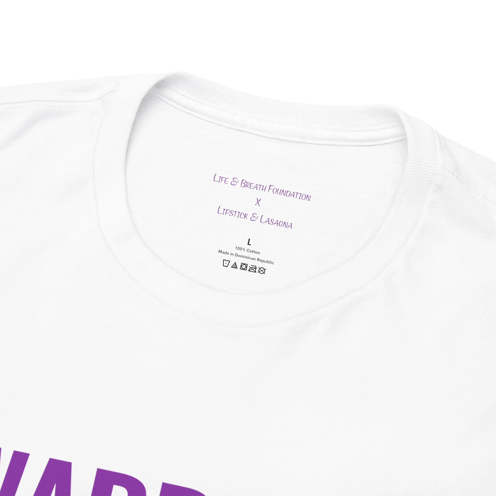 The Warrior Mode Activated Tee was created for those who keep breathing, believing, and fighting — no matter what. With bold purple lettering and a clean, modern design, this shirt represents the courage and resilience that define every sarcoidosis warrior.