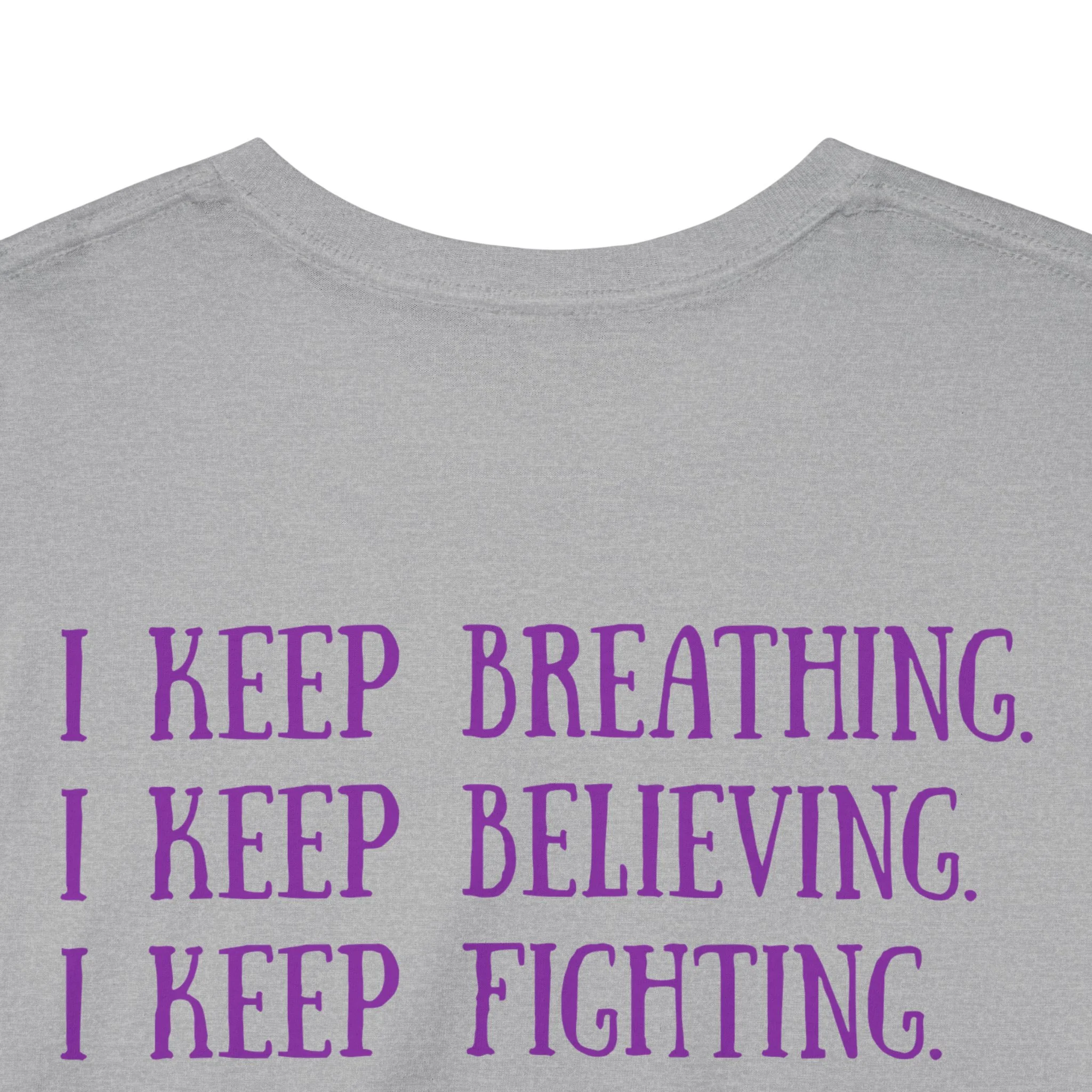 Finished with the purple awareness ribbon on the sleeve, this tee is more than a shirt — it’s a statement of hope, strength, and solidarity.